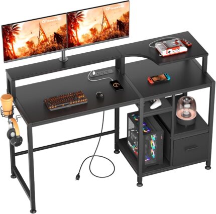 63 Inch Large Executive Computer Office Desk, Brown+Black