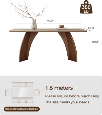 78.7″ Sintered Stone Dining Table for 8-10,Luxury Rectangular Kitchen Table with Solid Wood Legs, Mid-Century Dining Room Table for Living Room