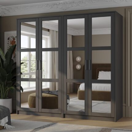 100% Solid Wood Urban 4-Door Wardrobe with Mirrored Doors