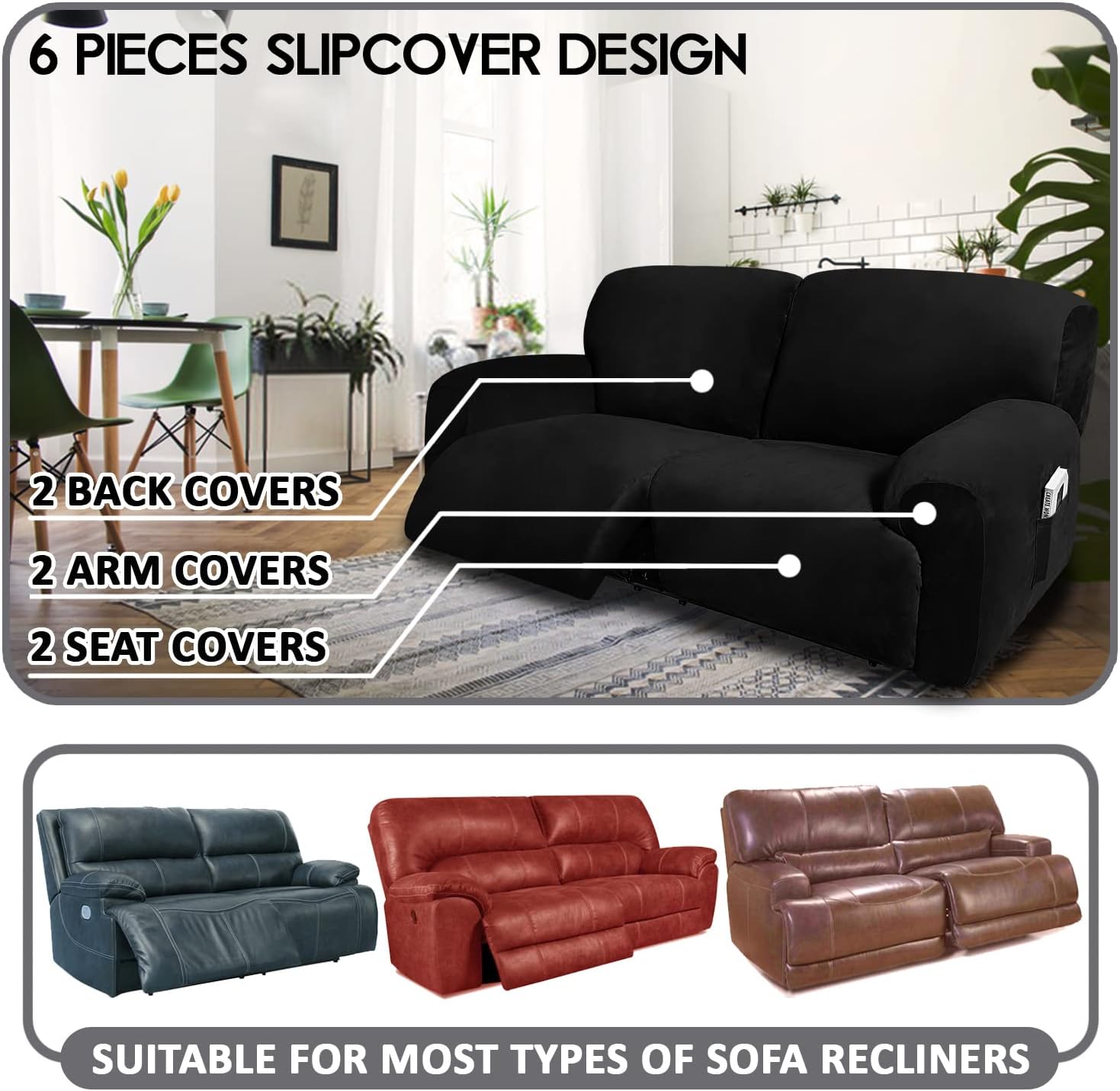 - HIGH QUALITY MATERIAL: This innovated 6 Piece love seat reclining 2 seater cover is crafted from luxurious velvet plush fabric, and is very soft, comfortable and sturdy ‘S Love seat covers are as close to custom.