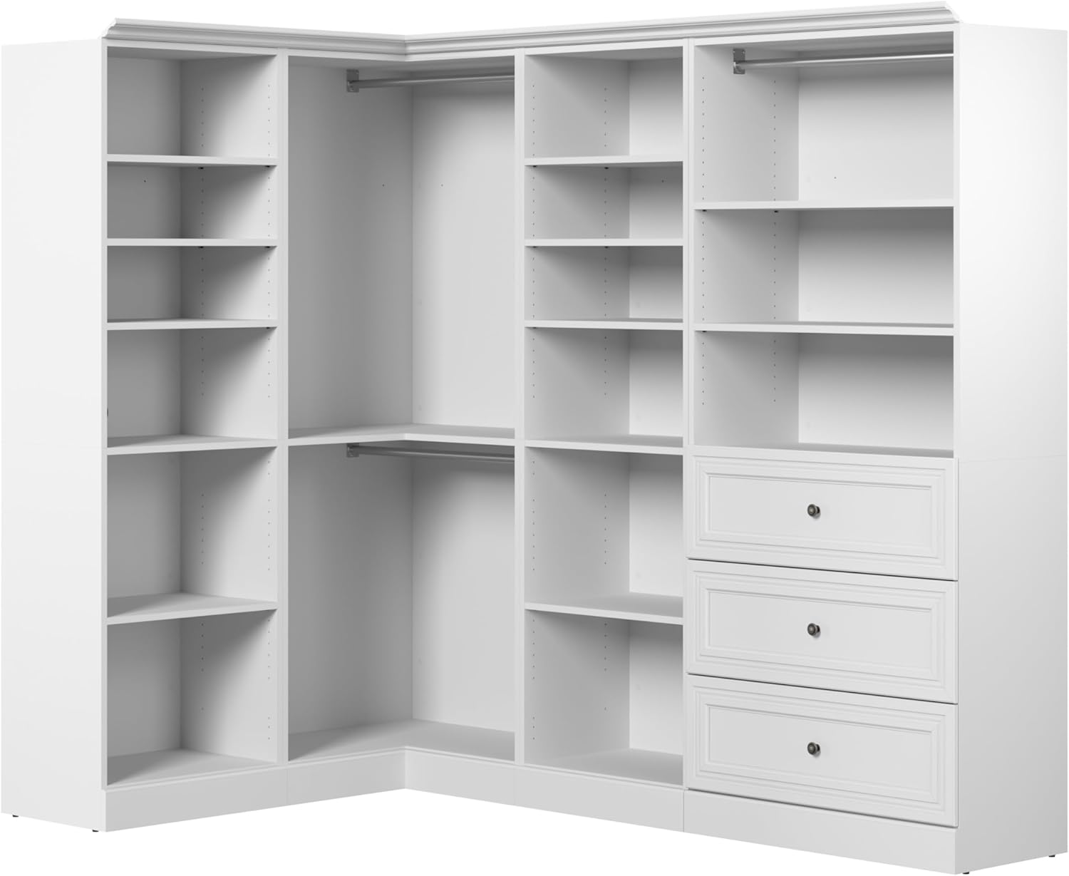 Versatile Walk-in Closet Organizer System, 97-inch White Wardrobe and Drawers for Home Storage, Bedroom, Laundry, or Entryway