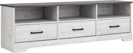 TV Stand, Washed White Storage Cabinet with Shelves, Living Room Storage Cabinet 66″ W x 20″ H x 16″ D