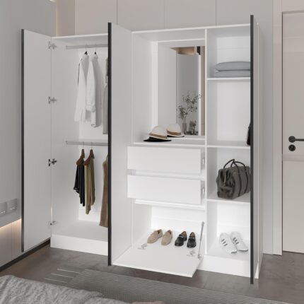 Wardrobe Organizer with Mirror and Storage Compartments, White